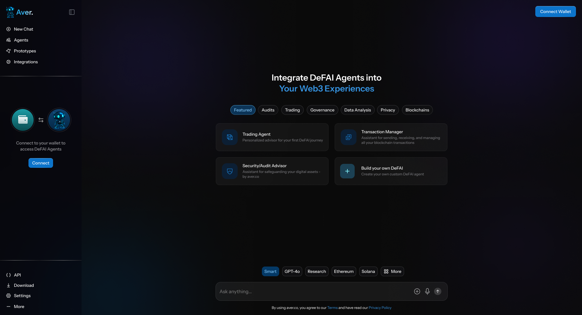 Aver redefines blockchain automation through powerful AI agents. Our decentralized platform bridges the gap between innovation and usability, enabling individuals and businesses to create, train, and deploy intelligent agents with ease. From streamlining DeFi strategies to transform data into actionable insights, Aver empowers you to take control — no coding required.